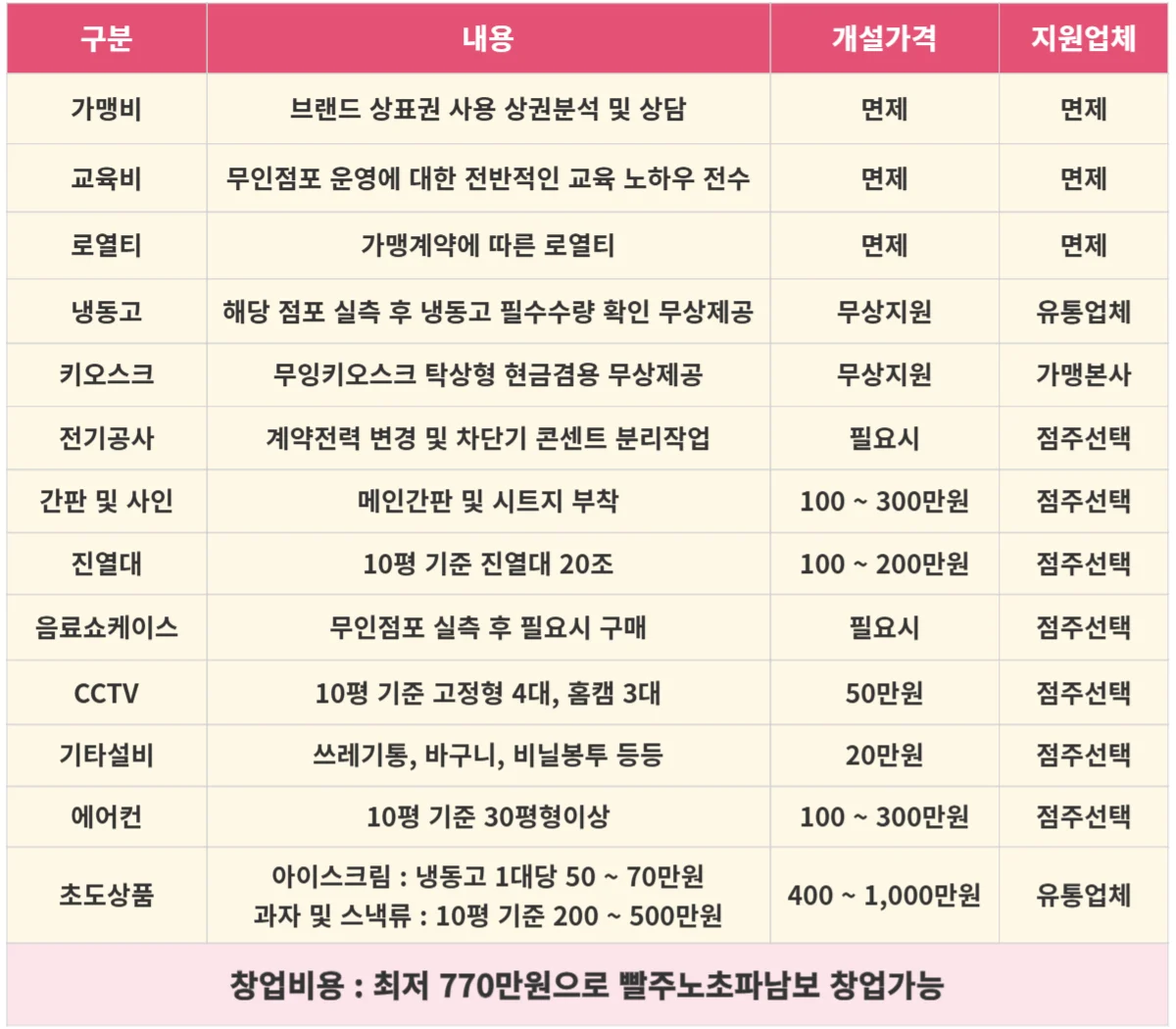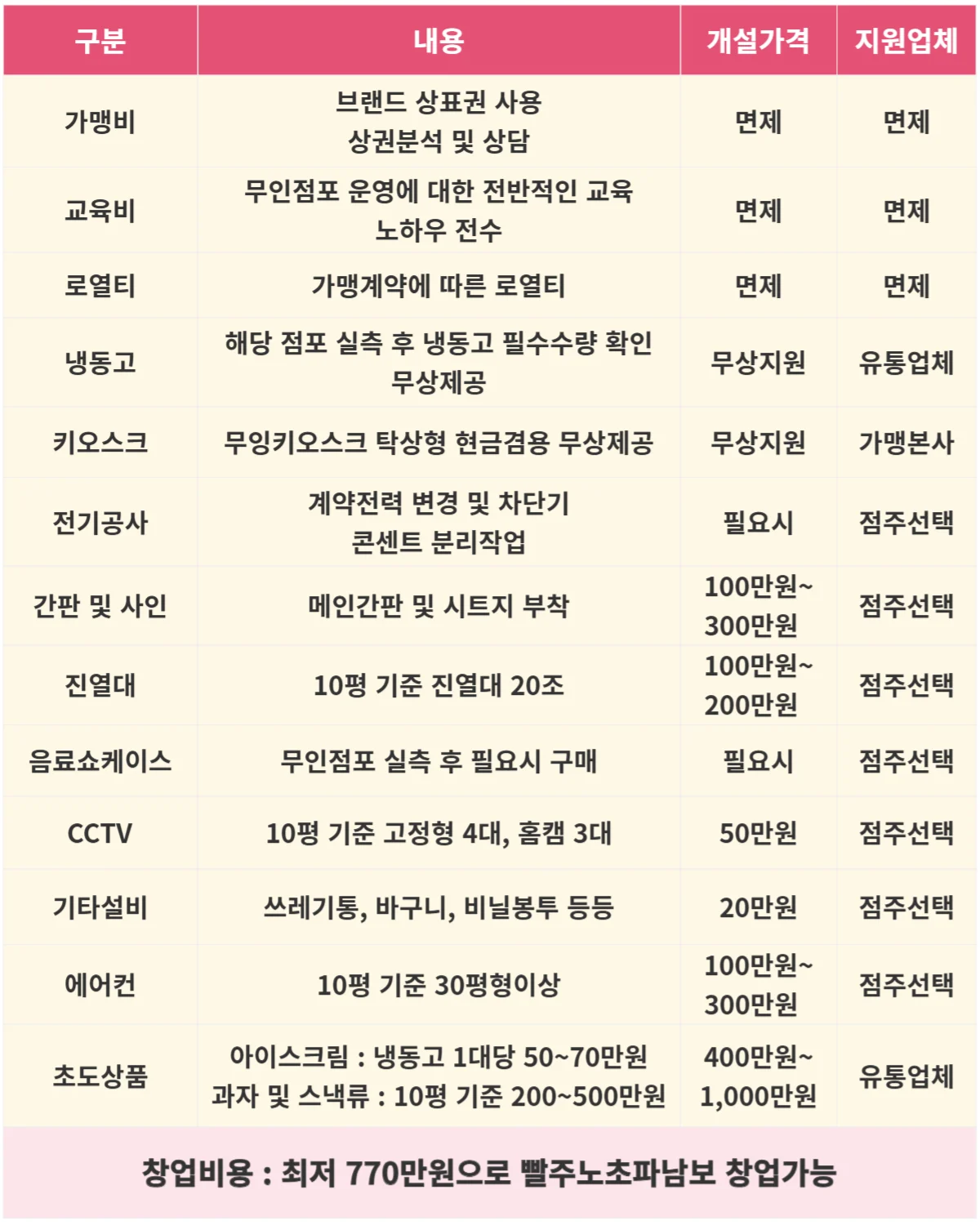 무가맹비, 무로열티, 무교육비로 무인사업에 대한